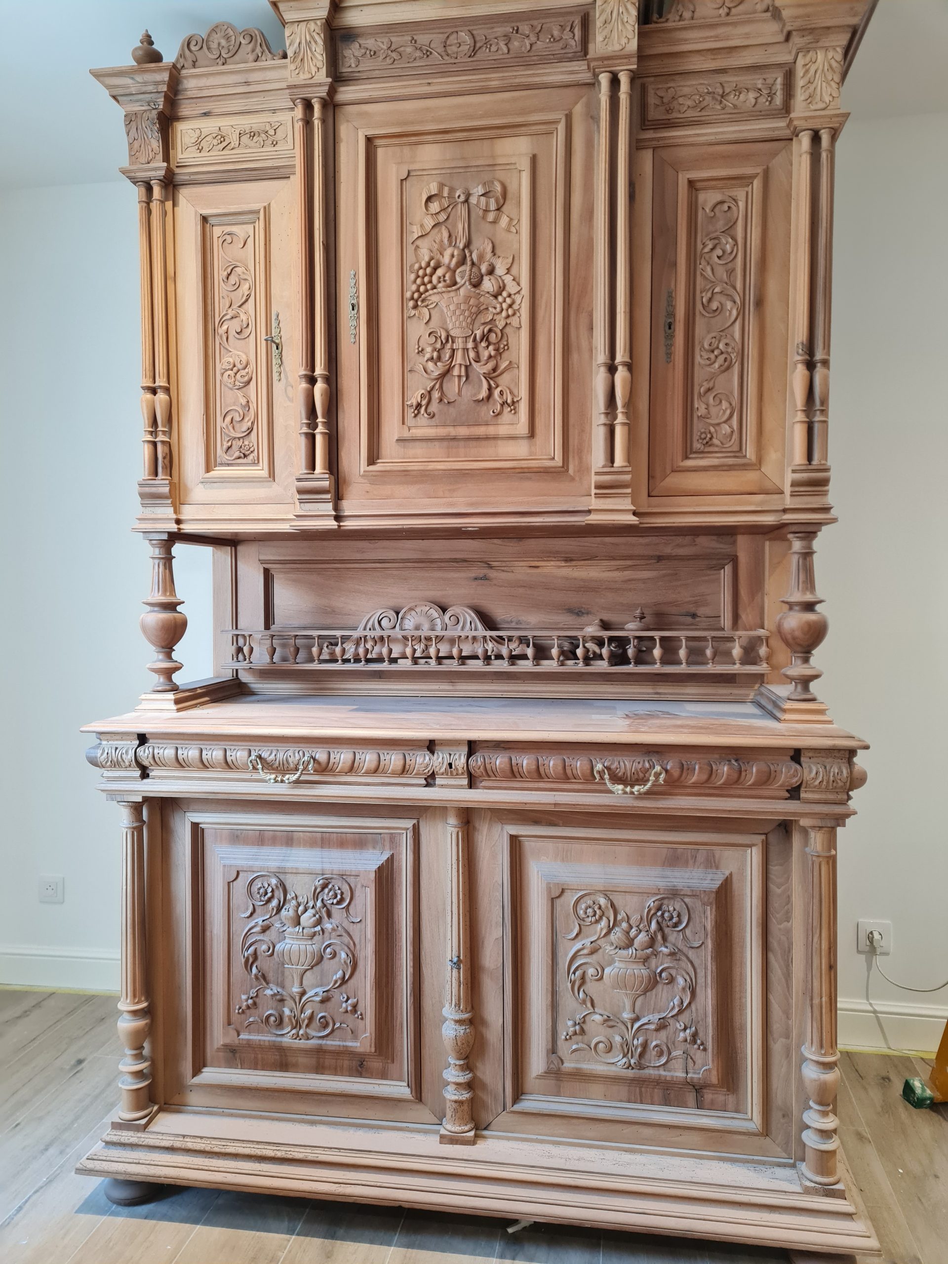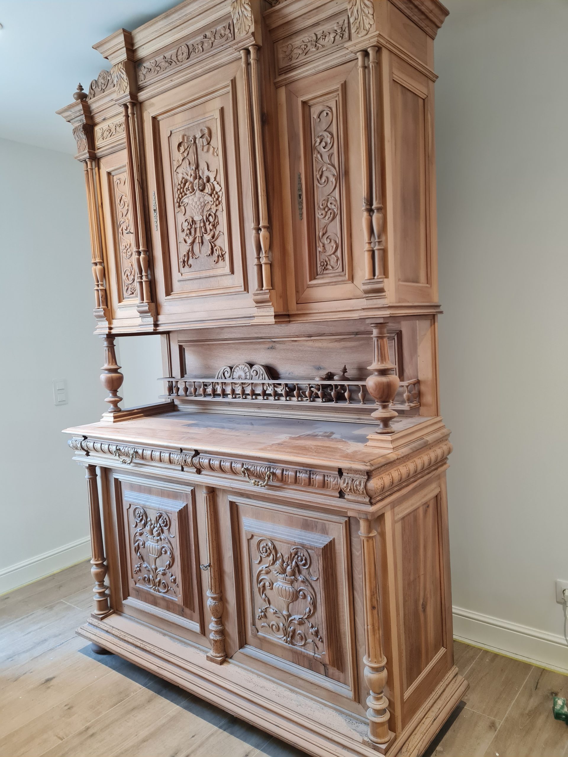 Rénovation ensemble table et buffet Henri II en noyer