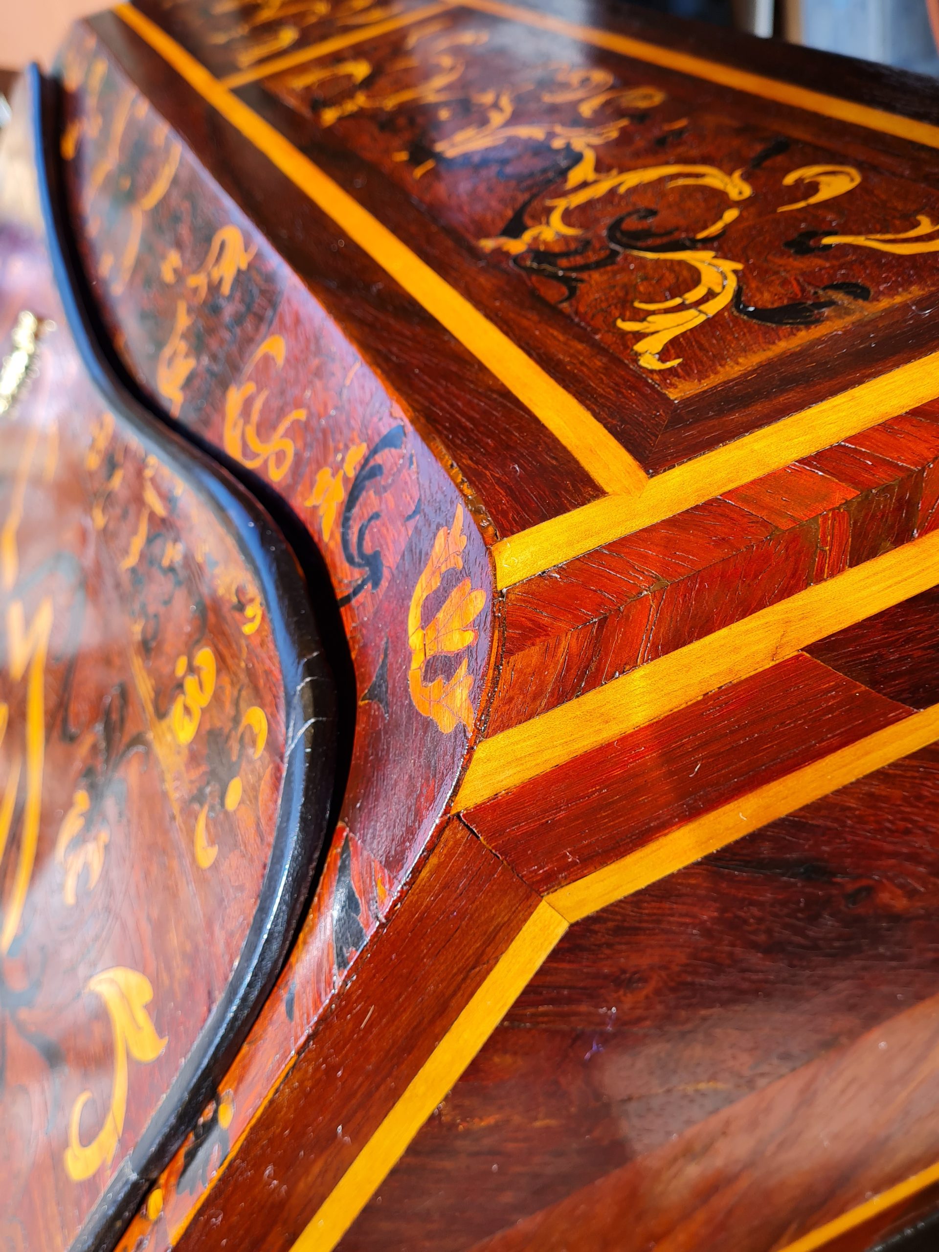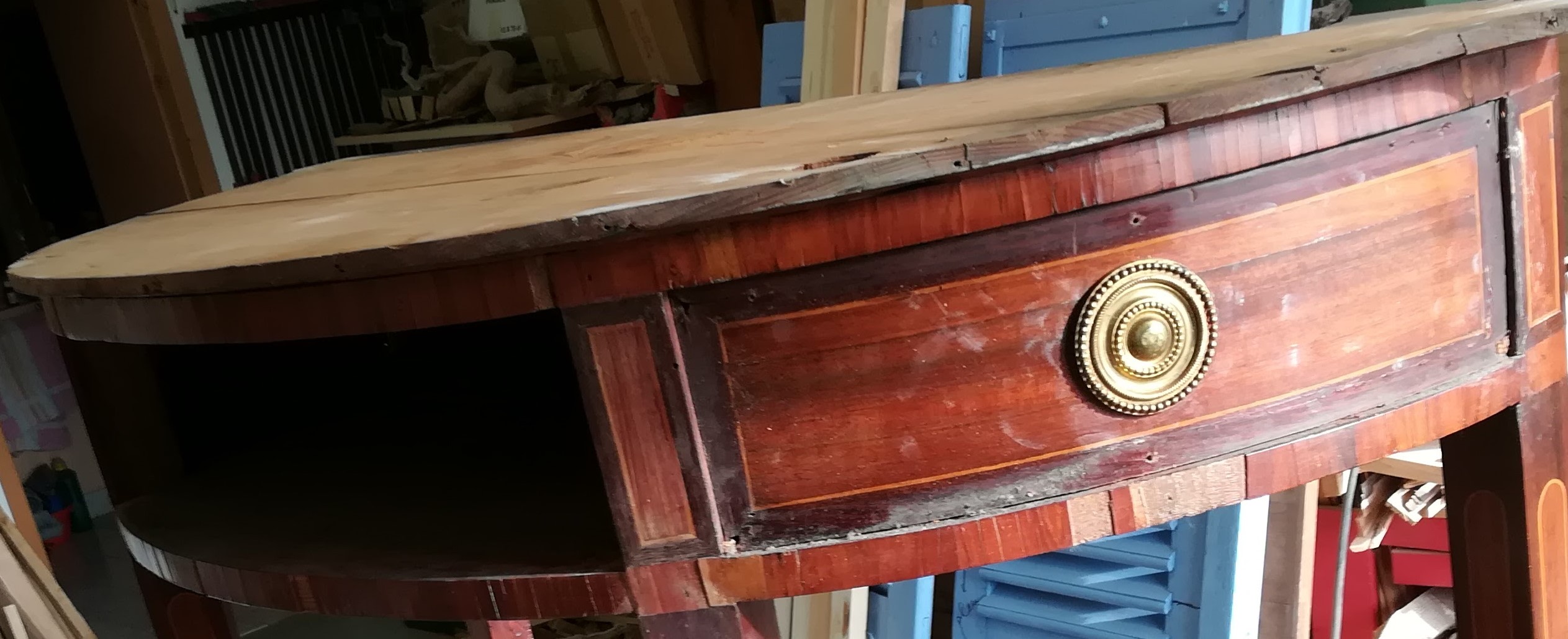 L’art de la marqueterie existe depuis la renaissance. Rien d’étonnant que nos meubles anciens malmenés par nos vies, les déménagements, l’humidité et les petits incidents de la vie subissent les outrages du temps. Un morceau de placage en bois de rose cassé, un filet de marqueterie en citronnier manquant ou un décor en marqueterie qui se décolle. Quelque soit le problème mon expérience et mon savoir faire d’ébéniste est à votre disposition pour redonner le lustre de votre meuble.