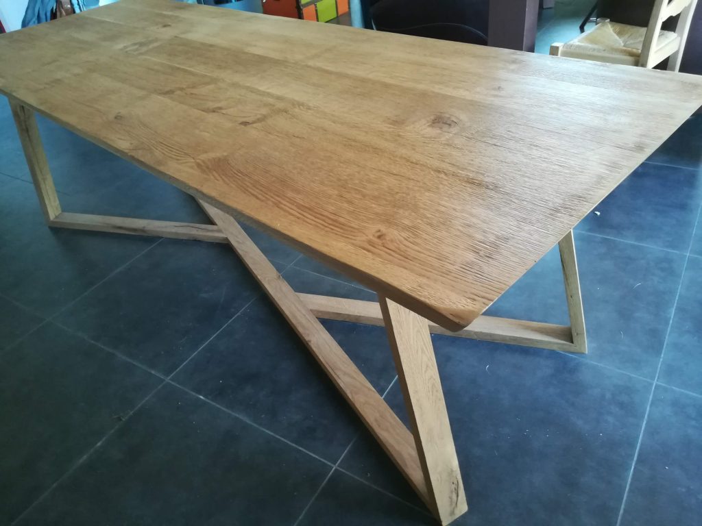 Toutes mes créations sont soit réalisées à partir de meubles existants ou soit à partir de plateaux de bois bruts que je récupère localement dans nos fermes ou chez d’anciens ébénistes.